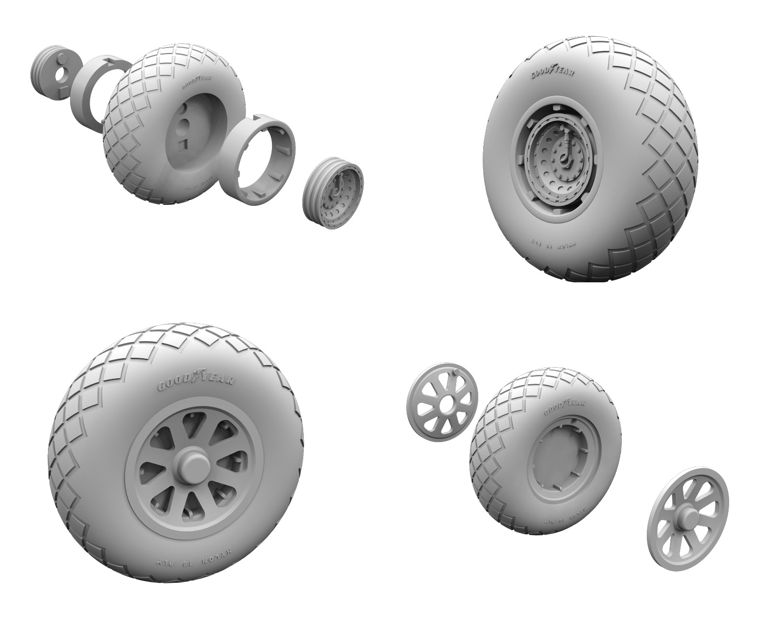 Master part patterns for scale model aircraft. Parts are drawn in CAD, then sent out for 3D printing. The printed parts are then used for making silicone rubber molds, which are then used to cast resin copies.